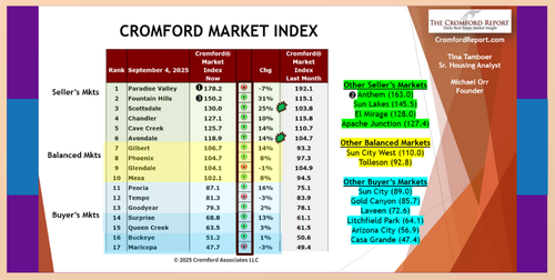 Quick note on a few cities. Any number above 100 is a Seller's Market, 90-100 is balanced, and under is a Buyer's Market: