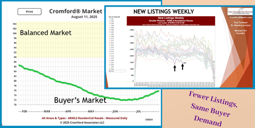 For the monthly period ending August 15, we are currently recording a sales $/SF of $283.82 averaged for all areas and types across the ARMLS database.This is down 1.6%from the $288.48 we now measure for July 15.